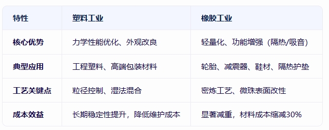 相容性匹配:針對不同基體(如PP、PE、SBR),需調整微珠粒徑與添加量,確保性能與成本的平衡。